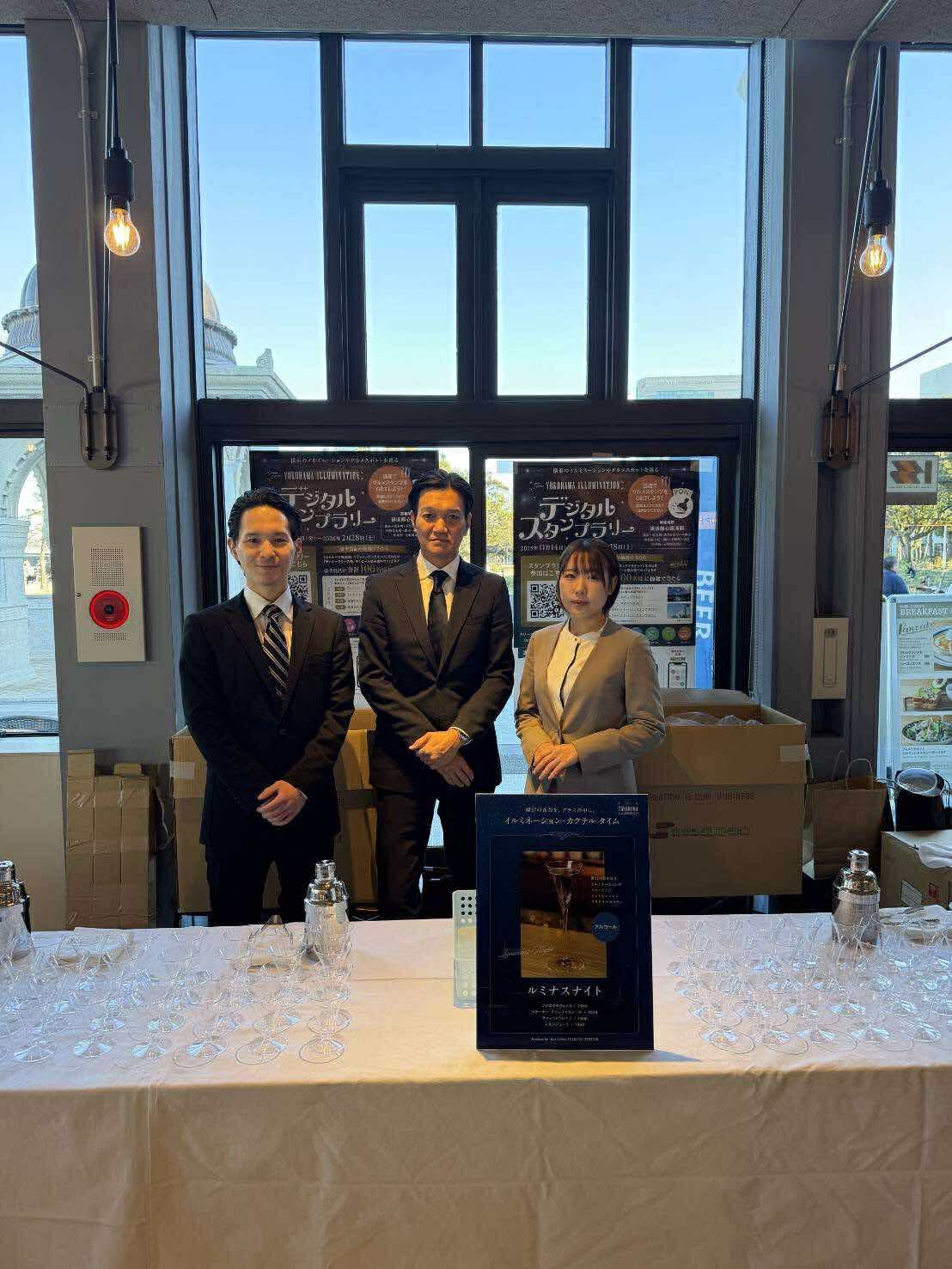 長友会員、芦田会員、岡田会員がイルミネーションをイメージしたオリジナルカクテルとノンアルコールカクテルを提供致しました。