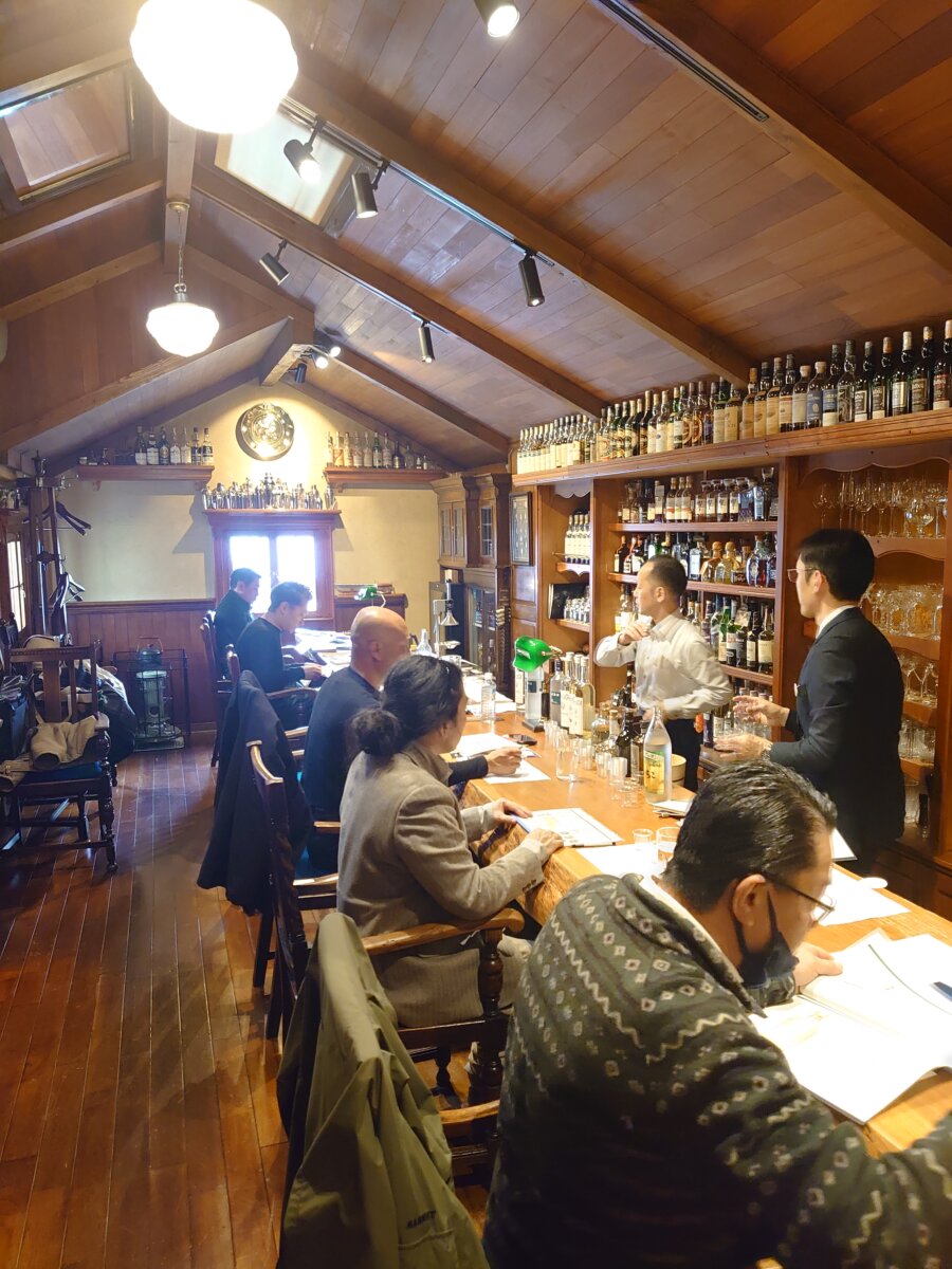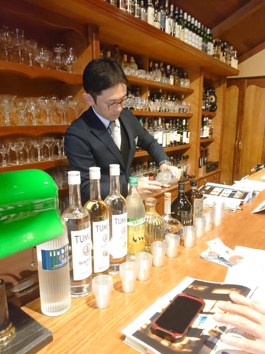 三和酒類㈱内藤様より取扱商品の「いいちこ」「TUMUGI」「彩天」などの商品をメインに、同社の歴史や蒸溜所所在地などの会社概要、「いいちこ」のネーミング秘話、焼酎の作り方や「いいちこ」「彩天」など原料や製法の説明などを9種類の商品の試飲と共に学びました。また、WAPIRITSの「TUMUGI」やBAR向け商品の麦焼酎「彩天」を使ったカクテルレシピ6種類の紹介と作成・試飲など行い、参加者一同で味わいやレシピ創作について意見交換や、担当の内藤様への質疑応答などで締めくくられ、大変有意義な商品説明会となりました。