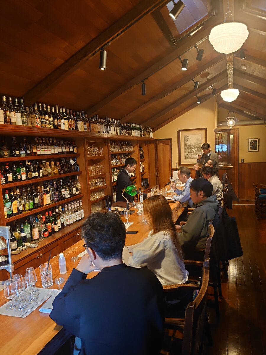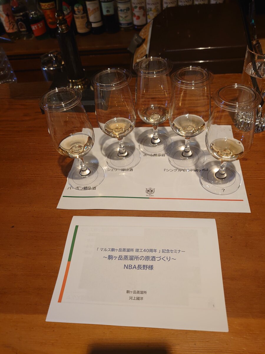 先ずは新所長に就任された武田様のご挨拶から始まり、駒ヶ岳蒸溜所40年の歩みと歴史、設立当初と現在の施設や工程の違い、製造過程のおさらいをし、「シングルモルト駒ヶ岳」のメイン構成原酒①バーボン樽原酒②シェリー樽原酒③ポート樽原酒の説明を受けながら試飲、本製品の「シングルモルト駒ヶ岳」と比較試飲し、その特徴と作成過程でのこだわりなどそれぞれの原酒のバランスの良さが活かされているヴァッティングとなっていました。また、未発表の新作ボトルの先行試飲も特別に試飲させて頂き、各年代から厳選し構成された、奥深い味わいに参加者一同感嘆致しました。武田様、河上様、長野県支部の為、詳しく丁寧な説明有難う御座いました。参加されました会員の皆様お疲れ様でした。